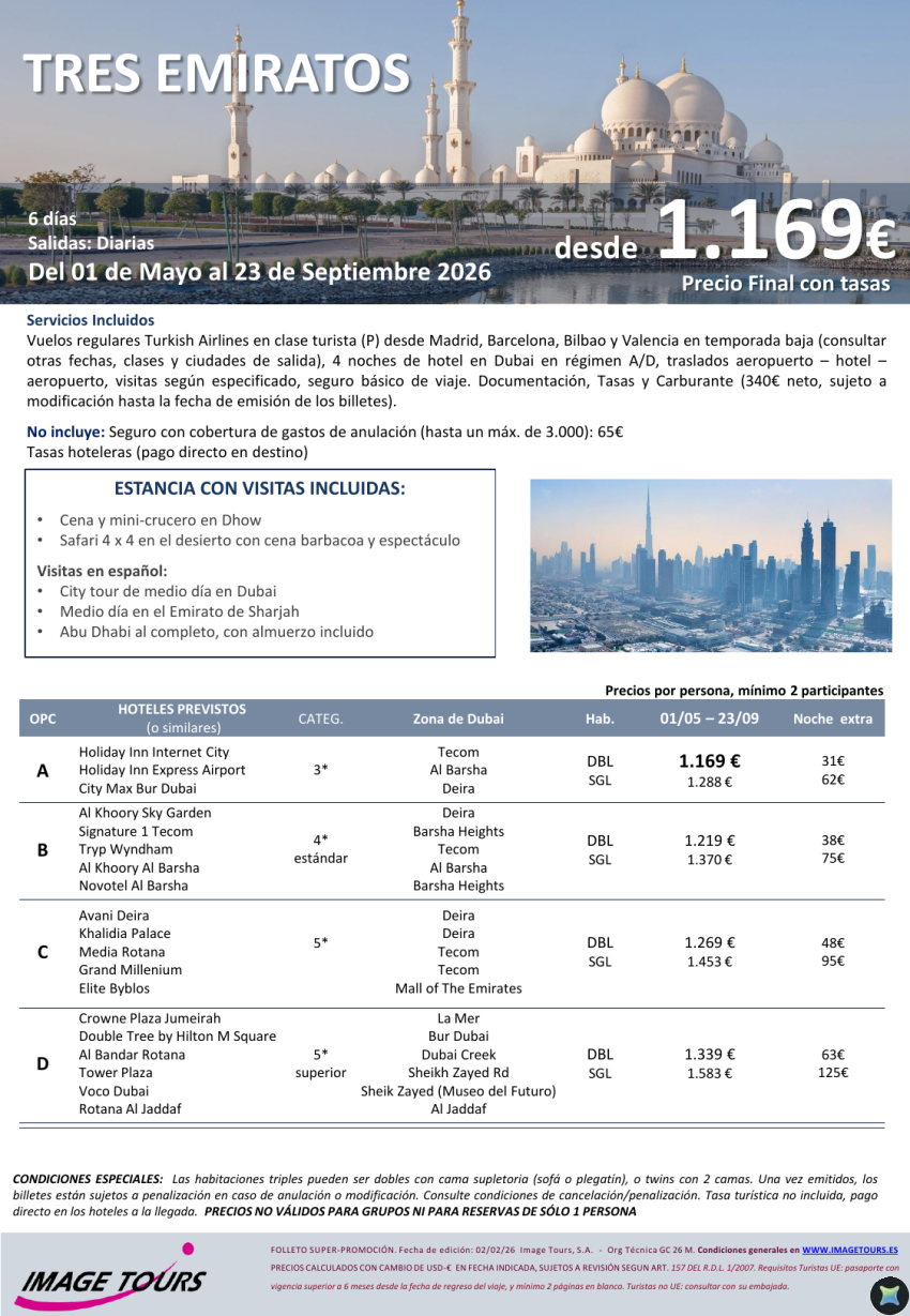DUBAI, Abu Dhabi y Sharjah *Tres Emiratos* circuito con visitas 6 días con crucero-cena y 4 x 4, desde 1.169€